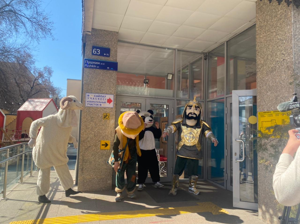 Так, на одном из участков в Алматы избирателей встречали персонажи из народных сказок. Актёр театра ростовых кукол Алияр Нурадилов вместе с коллегами решил оригинально отдать свой голос.