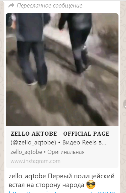 Ранее в социальных сетях появилось сообщение о том, что в Актобе "первый полицейский встал на сторону народа".