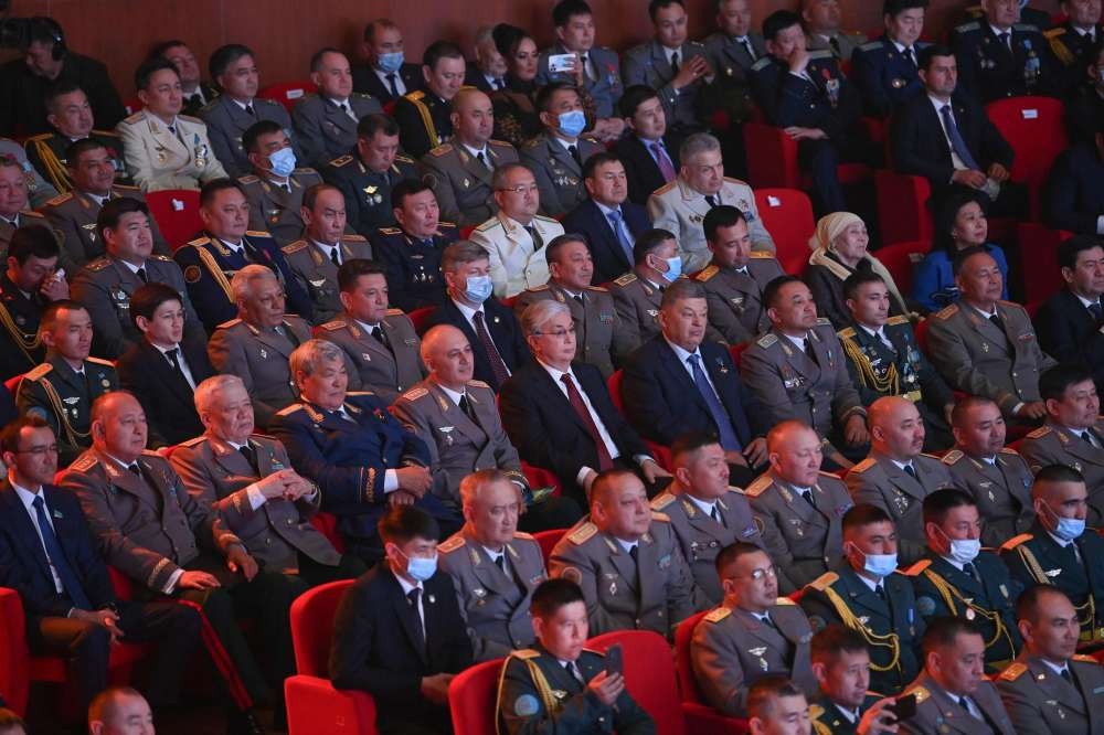 Президент указал на то, что военная доктрина нашей страны исключительно оборонительная, и в вопросах защиты национальных интересов мы полагаемся на дипломатию."Они с честью продолжают славный путь своих предков-батыров. Для казахов Родина и мужество – это равноценные понятия. Отвага у нас в крови. Как сказал Казыбек би, "чтобы враг не коснулся нашей земли, мы берем в руки копье". Воины Великой степи всегда умели защищать Родину своим острым копьем и сильной рукой. Они оставили своим потомкам необъятные земли от Алтая до Атырау. Мы сделаем всё, чтобы оставаться верными заветам предков и сохранять целостность и спокойствие нашей страны. Это священный долг каждого гражданина Казахстана, – сказал Касым-Жомарт Токаев.