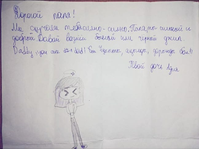 Дети пишут письма отцу-полицейскому, который находится в Кордайском районе из-за последних событий в регионе. Фото милых записок опубликовано на странице в