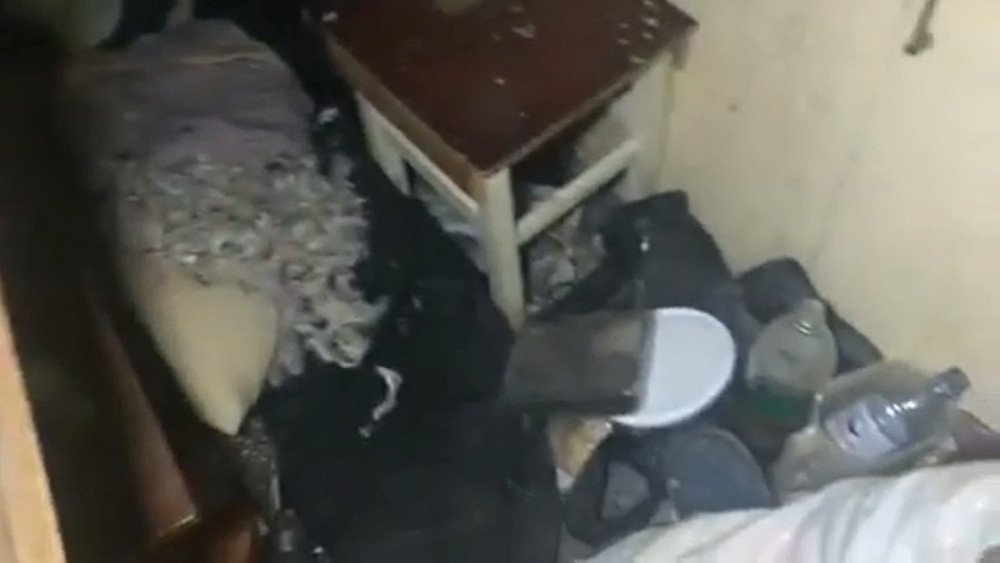 Квартира расположена в обычный пятиэтажке старой советской постройки. На видеокадрах заметен совершенный хаос в квартире столичного "Плюшкина", разбросанные в полном беспорядке вещи, а точнее, остатки вещей. Например, сломанный обломок настольного вентилятора, сваленные в кучу несколько десятков истоптанных тапочек. Сиротливо позирующие видеокамере огрызки разваленного кухонного шкафа, порванные картонные коробки, пустые пластиковые емкости, которые применялись для самых разных целей и, скорее всего, были подобраны на в мусорном контейнере.