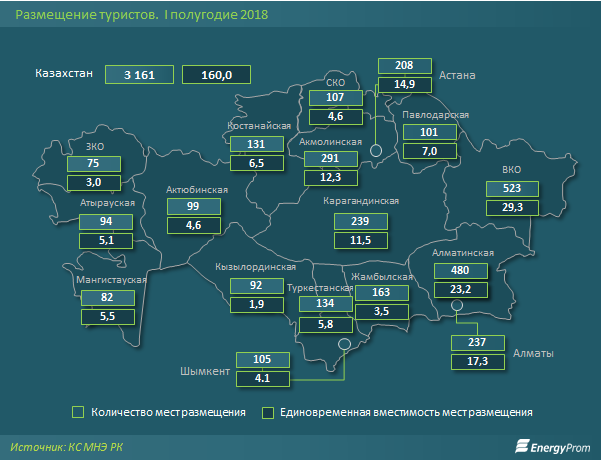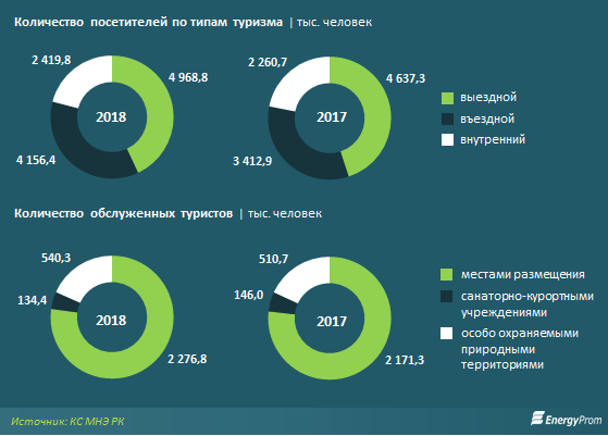 В первом полугодии текущего года туристические потоки как в Казахстан, так и из страны, заметно увеличились. Так, количество выездных туристов выросло год-к-году на 7,1%, до пяти млн человек, въездных - сразу на 21,8%, до 4,2 млн. Кроме того, развивается и внутренний туризм - рост на 7%, до 2,4 млн туристов. Об этом говорится в исследовании мониторингового агентства Еnergyprom.kz.