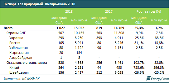 Экспорт голубого топлива за семь месяцев составил 15 млрд кубов, на 1,7% больше, чем в аналогичном периоде годом ранее.