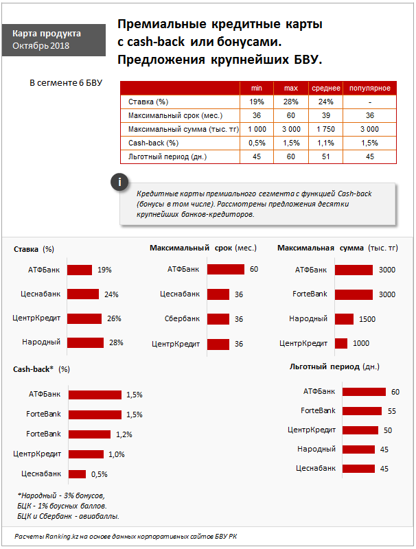 На фоне роста спроса и усиления конкуренции, банки разрабатывают наиболее интересные предложения для казахстанцев. Так, среди десятки крупнейших банков-кредиторов страны шесть банков второго уровня предлагают престижные кредитные карты премиум-класса от Gold и выше, с выгодной системой cash-back и бонусными программами.