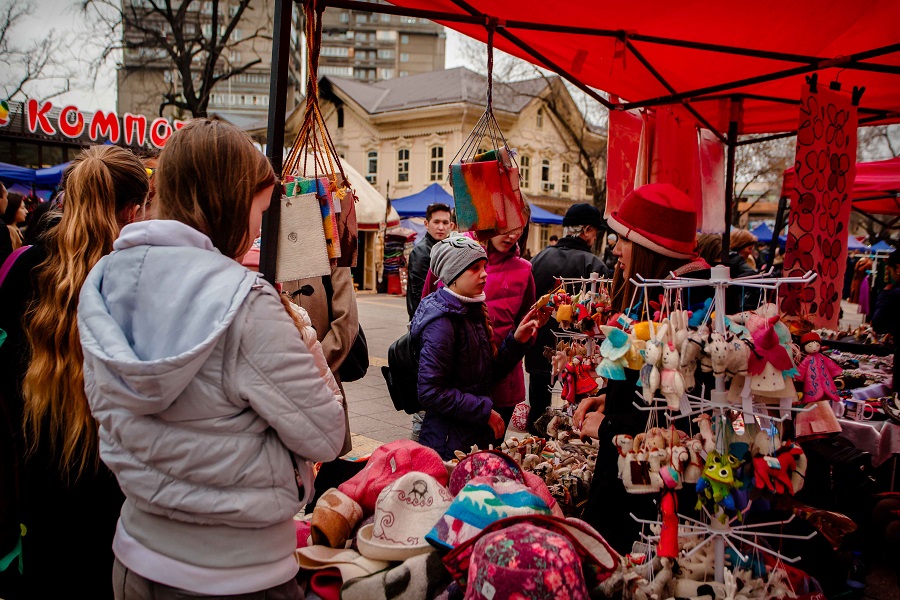 Мастера демонстрировали казахстанские сувениры, деревянную и керамическую посуду, серебряные и бисерные украшения, сумки и игрушки ручной работы, украшения с казахстанскими агатами и сувениры из натурального камня.