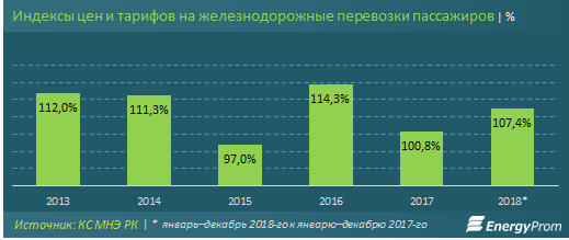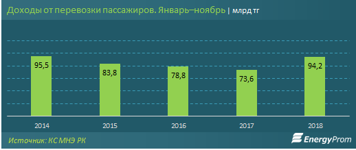В 2018 году впервые за последние годы был зафиксирован рост доходов от пассажирских перевозок. За январь–ноябрь 2018 года доходы увеличились год-к-году сразу на 28%, до 94,2 млрд тенге. Для сравнения, в аналогичном периоде 2017-го доходы сократились на 6,6% за год.