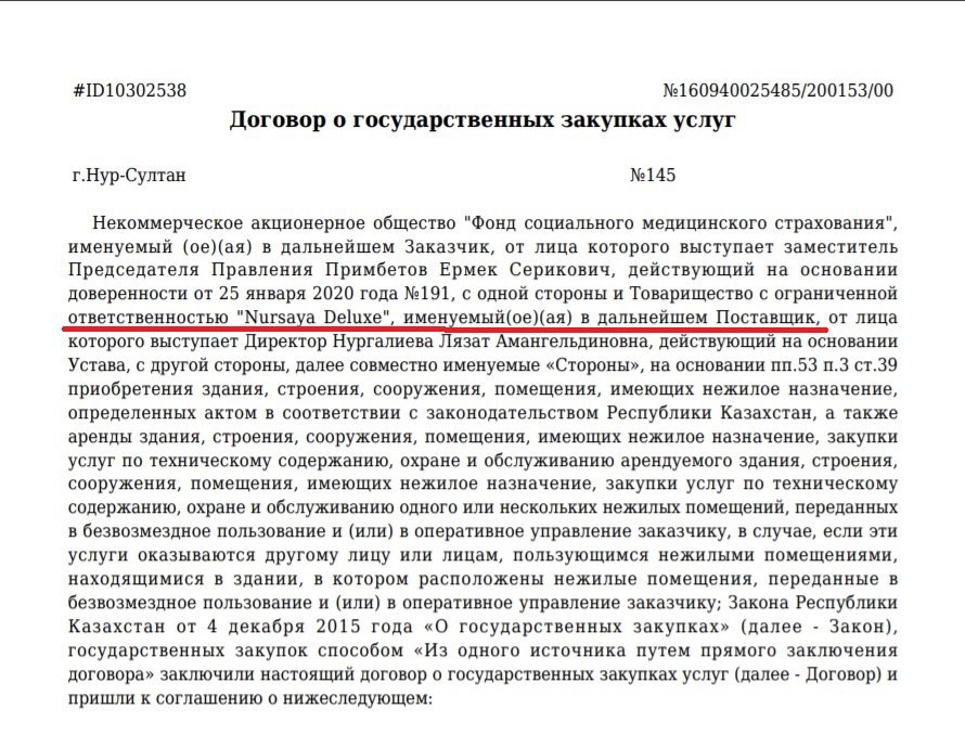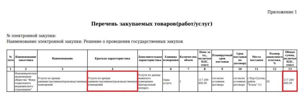 Как любая серьезная организация, Фонд соцмедстрахования располагается в комфортабельных офисах со всем необходимым. Конечно, такое помещение и стоит недешево. Согласно данным сайта госзакупок, ФСМС с января 2020 года арендовало у ТОО Nursaya Deluxe офисы с паркингом за 68 миллионов тенге. И это только плата за три месяца. В конце июня договор аренды продлили сразу на полгода, сумма составила 117,2 миллиона тенге. К слову, помимо рабочего пространства, у главы Фонда есть и комната отдыха.