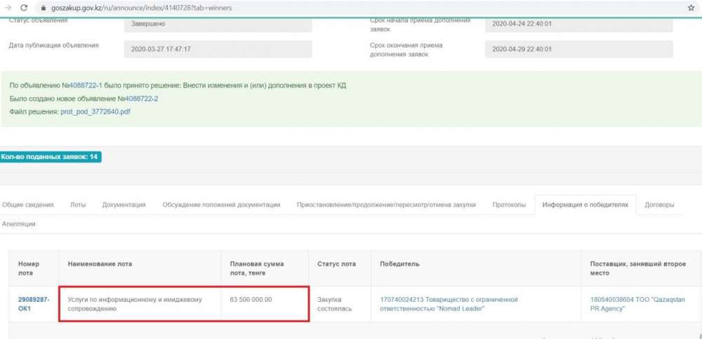 Во всей этой истории вишенкой на торте стали траты Фонда на PR своей деятельности. На сайте госзакупок мы обнаружили тендер на продвижение имиджа организации на таких площадках как Facebook, VK, Instagram и тому подобные. На все это руководство ФСМС в 2020 году не пожалело 63 500 000 тенге.