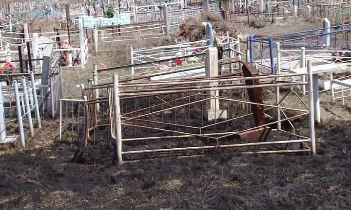 По данным А. Назарова, в родительский день пожарные выезжали тушить огонь три раза, горели территории трех кладбищ города.