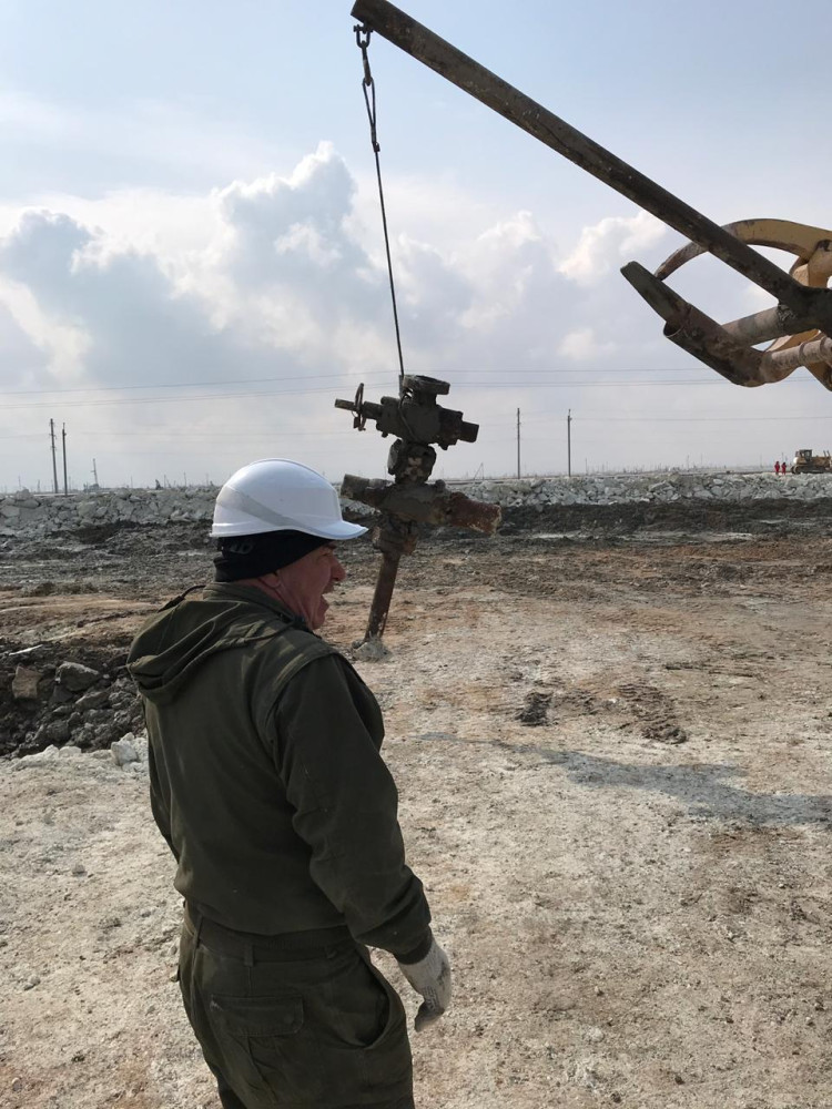 Сейчас ведутся работы по демонтажу основания вышки буровой установки и элементов противовыбросного оборудования, блока глушения, коренной задвижки и манифольдной линии со стороны блока глушения, а также демонтаж направляющих рельсов перемещения ПВО к устью.