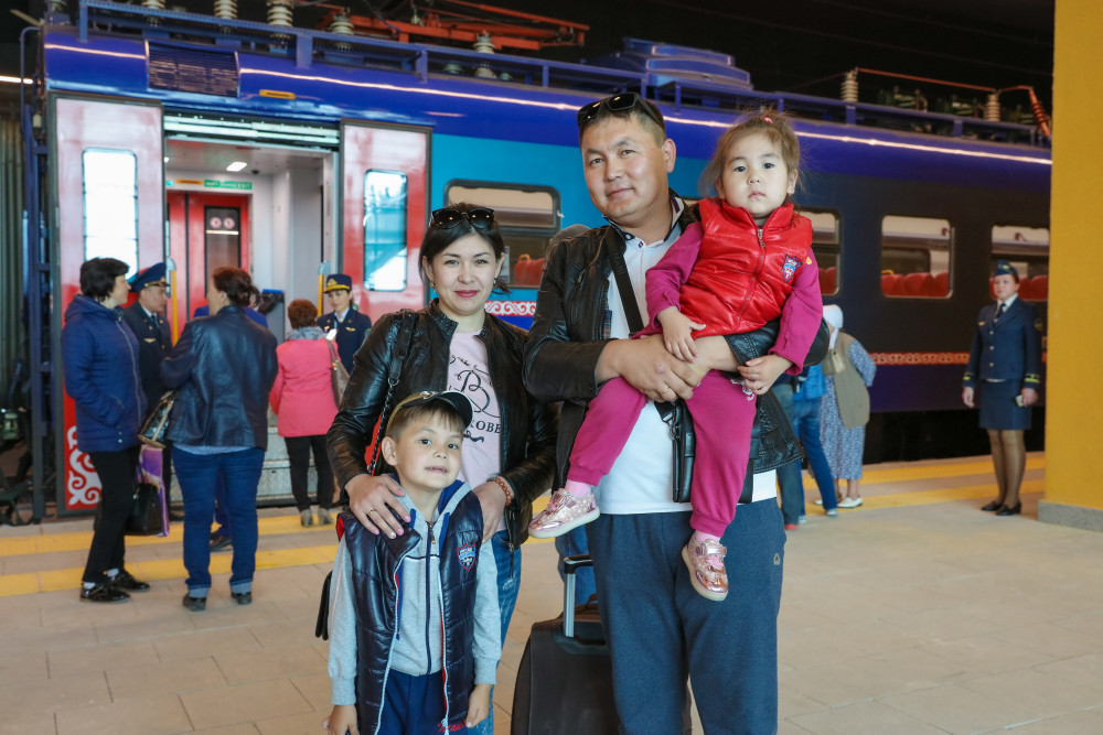 Глава семьи Жусуповых, приехавших из Балхаша, не скрывает удовлетворения от поездки и радости прибытия на новый вокзал.