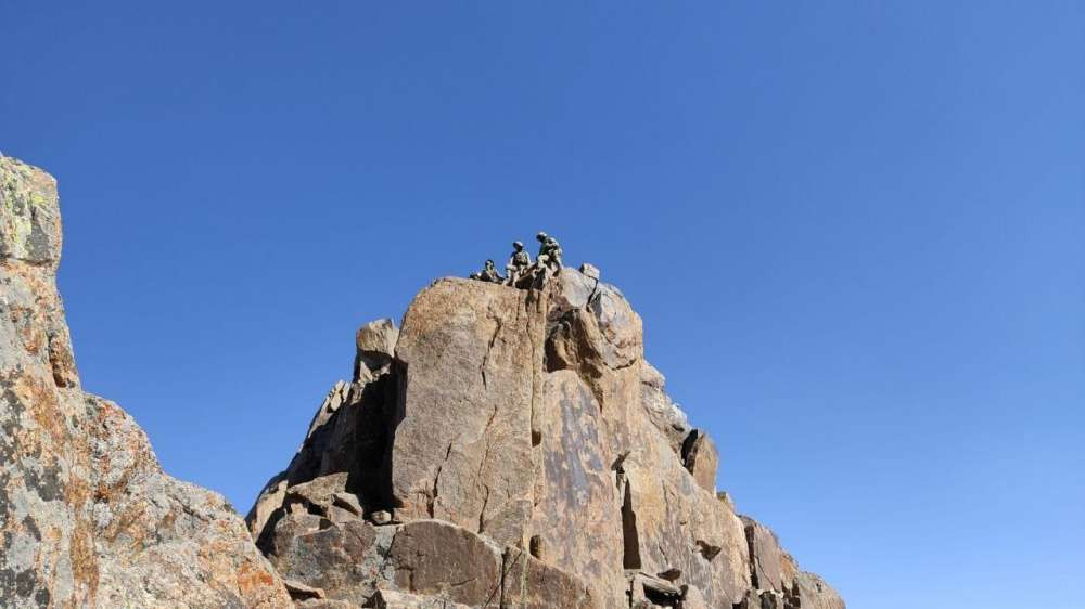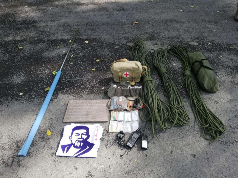 Достигнув вершины, военнослужащие водрузили на ней флаг Республики Казахстан. На пике также была установлена памятная мраморная плита от имени Вооруженных сил.