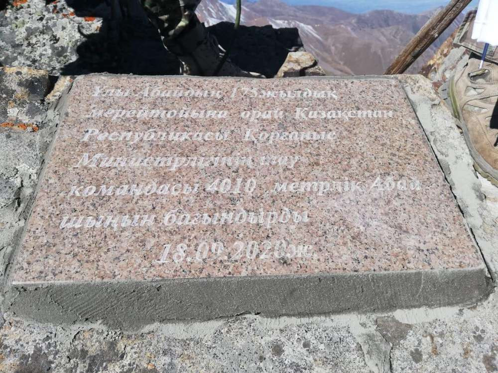 Достигнув вершины, военнослужащие водрузили на ней флаг Республики Казахстан. На пике также была установлена памятная мраморная плита от имени Вооруженных сил.