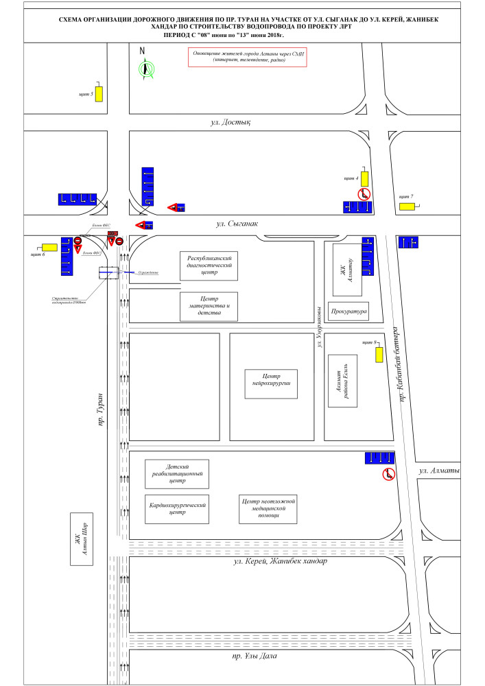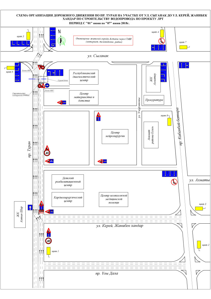 "В рамках реализации проекта строительства линии ЛРТ "Новая транспортная система города Астаны" (участок от аэропорта до нового железнодорожного вокзала) с 1 по 13 июня вводится частичное ограничение движения автотранспортных средств по проспекту Туран от улицы Сыганак в сторону улиц Керей, Жанибек хандары в районе Республиканского диагностического центра (поочередное закрытие каждой стороны)", - говорится в сообщении столичного акимата.