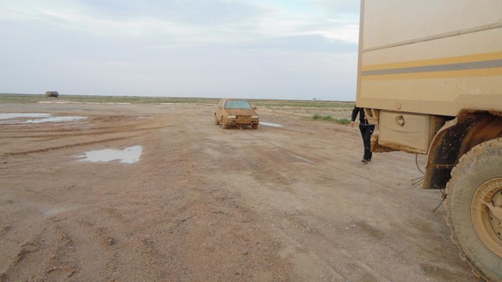 Вдоль автодороги из Кызылорды до Караганды общей протяженностью 925 километров много так называемых «слепых пятен», когда не ловит сотовая связь, и вблизи нет человеческого жилья. Ездить по этому маршруту довольно опасно, а учитывая «убитое» состояние дороги, так вообще нежелательно. Но люди все равно ездят, поэтому на самом трудном участке в местечке Калмас зимой работает обогревательный пункт, построенный еще в 1970 году. А в ДЧС Кызылорды, как только снегопад, спасатели ждут сообщений – застрявшие машины и людей, оказавшихся пленниками ситуации надо вытаскивать из беды как можно скорее.