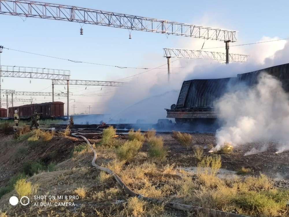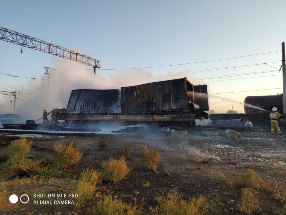 Между тем, по сообщению пресс-службы МЧС РК, в грузовом поезде в металлическом контейнере произошло загорание (желтый фосфор).