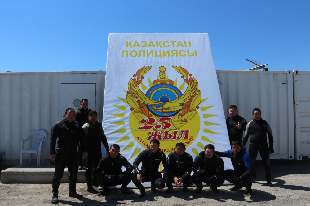 Во флешмобе задействовали не только сотрудников правопорядка и спасателей. Сделать акцию яркой и красочной помогли дети и студенты. Главной сценой выбрали Каспий. На море разложили огромный баннер с эмблемой полиции, который окружили водолазы. На берегу воспитанники юношеской парусной школы выложили из своих парусников юбилейную цифру «25». Зрелищное действо разворачивалось и на огромной яхте. Сотрудник полиции пел патриотическую песню, а в небо выпустили 50 голубей. В это же время на побережье Актау студенты выстроили символичную фигуру земли. Внутри нее студенты военной кафедры одного из вузов написали фразу «25 лет». В мероприятии приняли участие 350 человек.