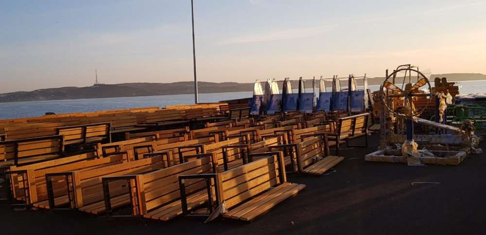 На зону пляжа и амфитеатра на протяжении 200 метров завезли белый кварцевый песок. Пляж, разумеется, будет оборудован шезлонгами и прочими атрибутами отдыха у воды, а амфитеатр – местами для посадки людей.