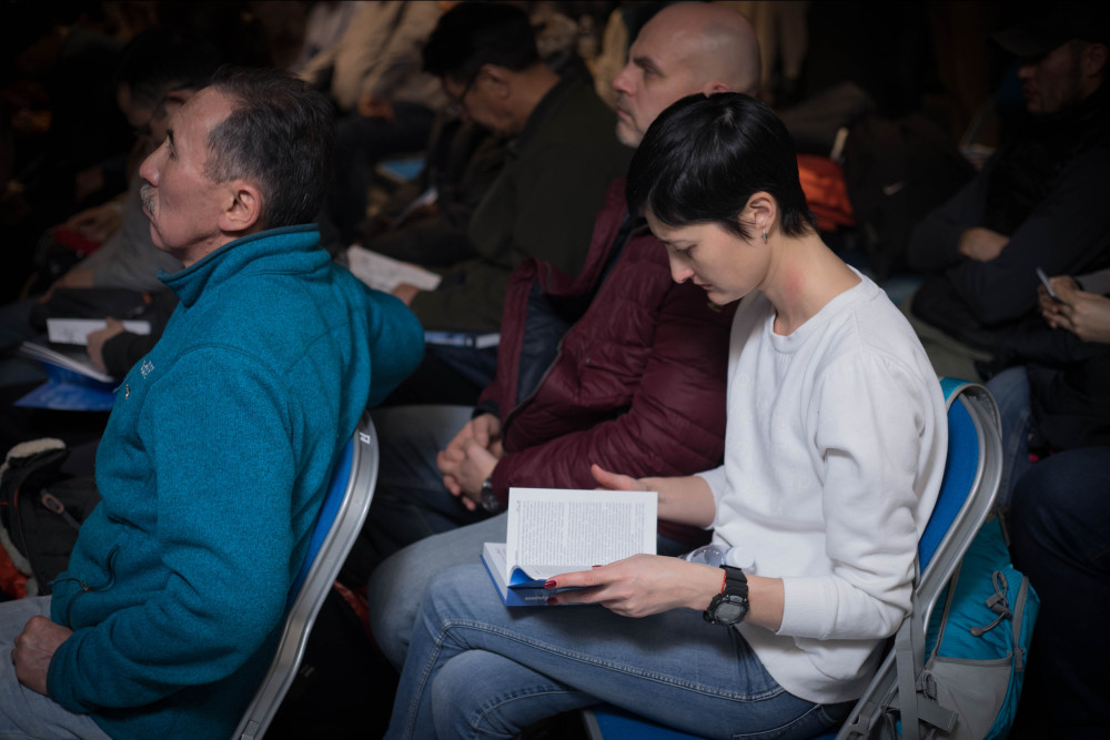На презетации книги собралось несколько поколений альпинистов, любители гор, представители общественности. О малоизвестных фактах из жизни Анатолия Букреева рассказали альпинисты Ринат Хайбуллин, Владимир Фролов, а также журналист и автор книг о казахстанских альпинистах Галина Муленкова.