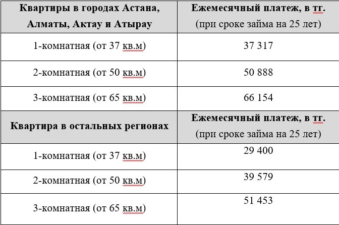 В рамках государственной программы "Нұрлы жер" в основном строятся 1-2-3 комнатные квартиры. В организации "Баспана" предложили также примерный расчет ежемесячных платежей по программе "7-20-25" в случае приобретения жилья через акиматы.