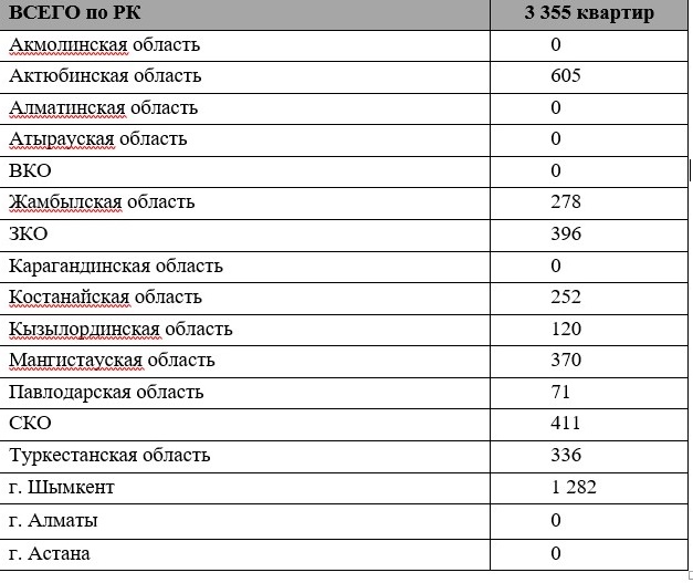 Самое большое количество доступных квартир для "7-20-25" будет выделено в Шымкенте (1282 квартир), Актобе (605 квартир) и СКО (411 квартир).