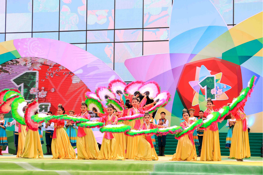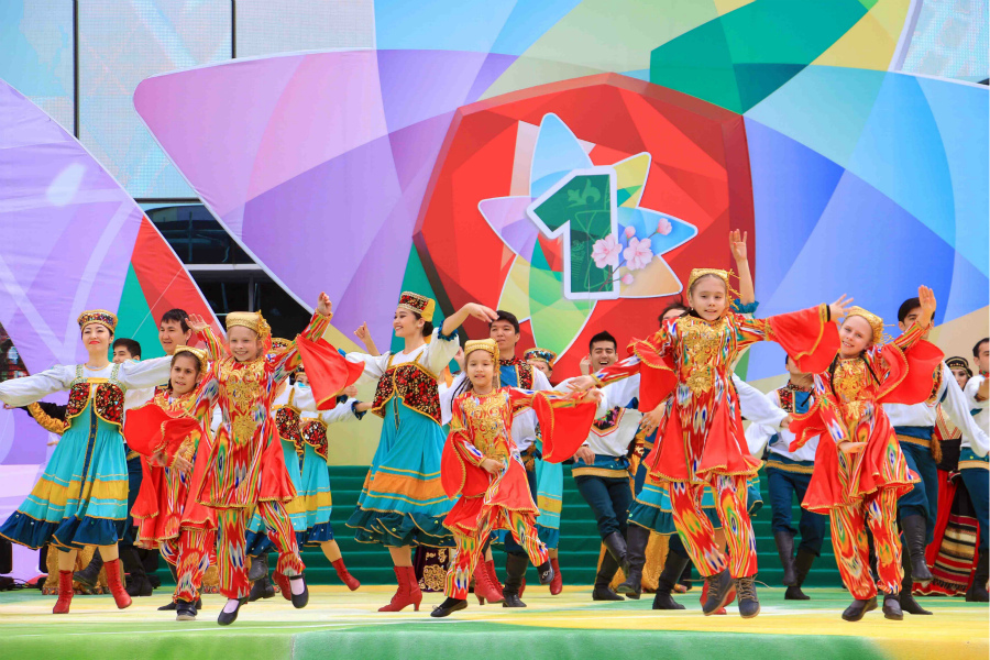 Группа «Сенім» и ансамбль «Аспан» продемонстрировали номер «Родина моя». Также на сцене выступили танцоры студии корейского традиционного танца «Намсон», Алмаз Алтынбеков, группа «Гаухартас», шоу балет «Райс», Шахноза Матназарова с узбекским танцем, Найли из Армении и многие другие.