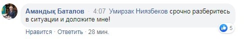 В комментариях к одному из постов Аиды Букаевой обозначился аким Алматинской области Амандык Баталов. Он оставил сообщение, тегнув заместителя управления здравоохранения Алматинской области Умирзака Ниязбекова.