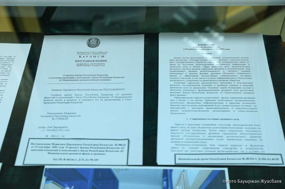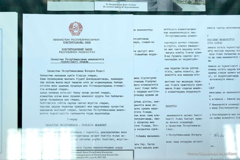 В Нацархиве хранится и основной документ современного периода Казахстана — конституционный закон о независимости РК. Он был принят 16 декабря 1991 года и с этого момента начинается отсчет нашего независимого периода.