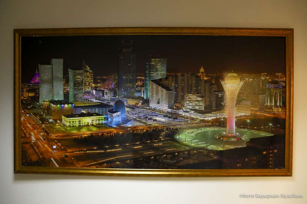 По всему зданию архива висят фотографии столицы из личного фонда фотографа Владимира Курилова. Он фотографировал всю Астану, и город у него представлен в самых разных ракурсах. Самого художника, к сожалению уже нет в живых. Как пояснили сотрудницы архива, фотографии на хранение передал его брат.