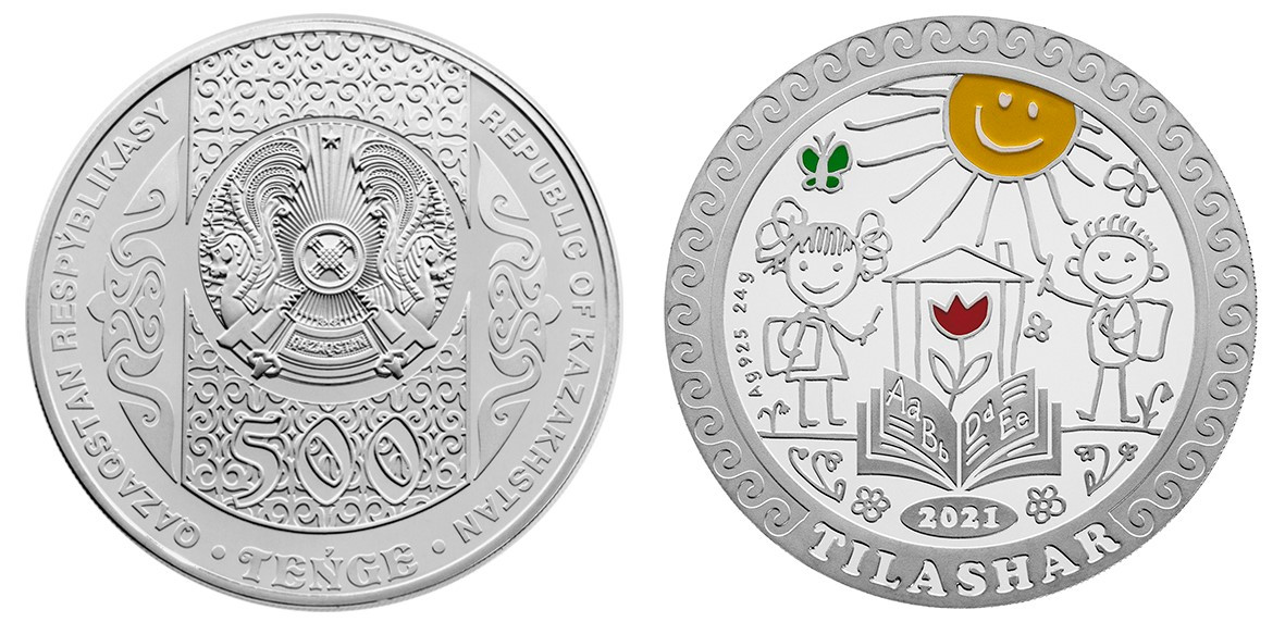 Описание монет TILASHAR: Монеты из серебра номиналом 500 тенге, из мельхиора номиналом 100 тенге и из нейзильбера номиналом 100 тенге продолжают серию "Обряды, национальные игры Казахстана". Тілашар – особенное событие в жизни каждой семьи. Прежде обычай проводили после того, как ребенок произносил свои первые слова. Сегодня традиция символизирует первый шаг навстречу знаниям, отмечается на сайте НБ.