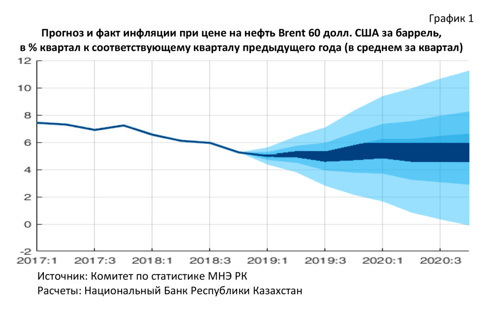 "Согласно прогнозам, с учетом внутренних и внешних предпосылок прогноза, в 2019 году годовая инфляция будет находиться в пределах таргетируемого коридора 4-6%", - говорится в сообщении.