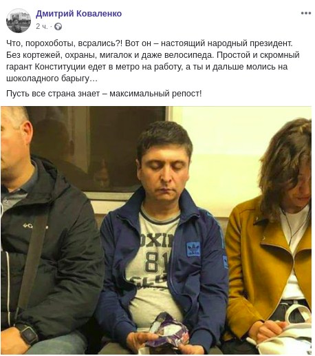 В августе этого года соцсети облетело фото мужчины, очень похожего на президента Украины Владимира Зеленского. Снимок был сделан в вагоне московского метро, а опубликовал его киевлянин Дмитрий Коваленко на своей странице в Facebook.