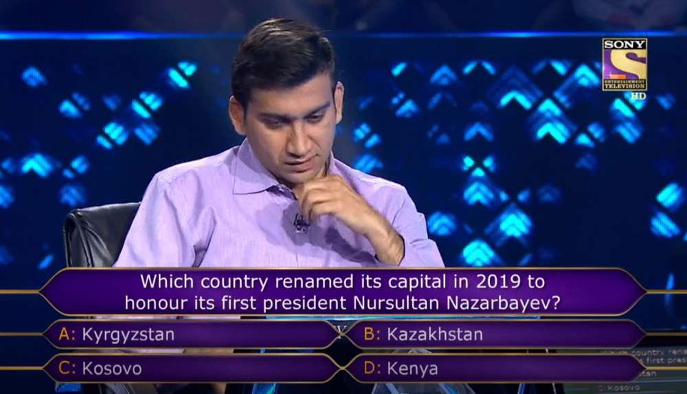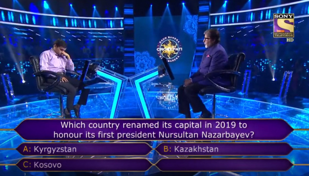 Видео индийского шоу (10 эпизод 2019 года) можете увидеть здесь. Вопрос о Казахстане звучит на 48 минуте телеигры Kaun Banega Crorepati.