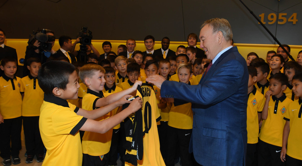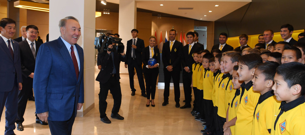 Нурсултан Назарбаев побеседовал с юными спортсменами, обучающимися в академии футбольного клуба «Кайрат», и поинтересовался их достижениями в спорте и учебе.