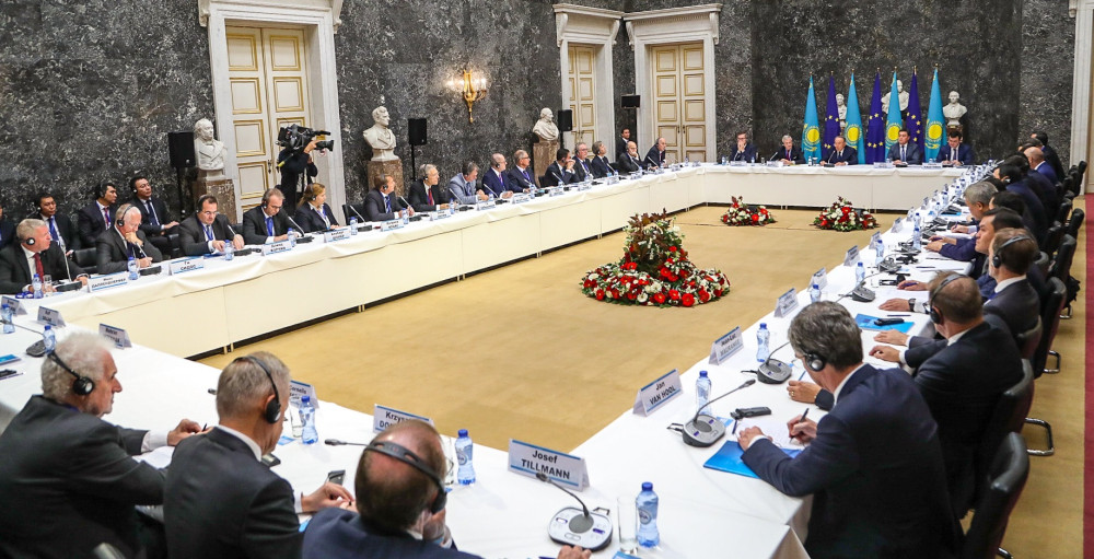 Фото: Бауыржан ЖуасбаевПрезидент Казахстана подчеркнул, что товарооборот с европейскими странами в последние годы стабильно растет, и отметил, что в нашей стране в различных сферах действует порядка 3000 предприятий с участием европейского капитала.