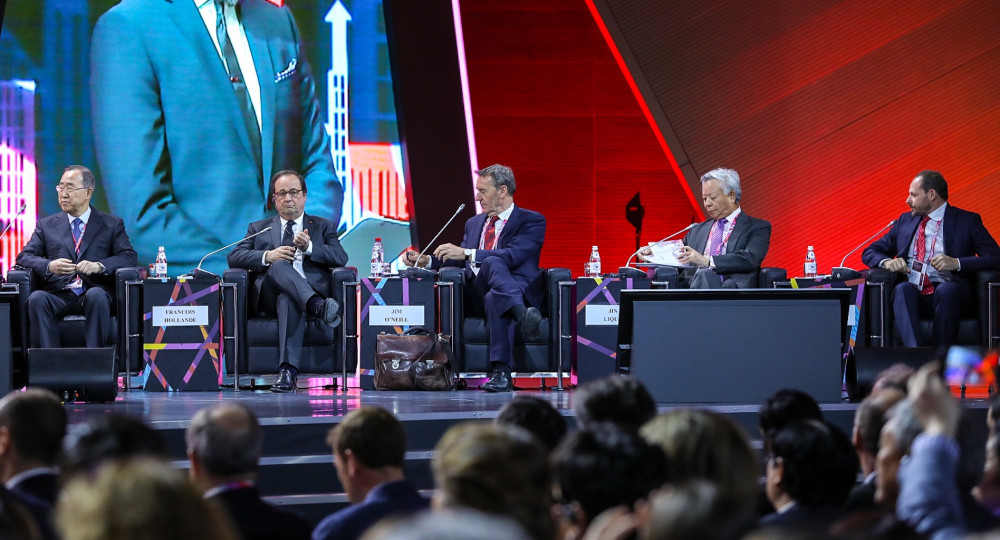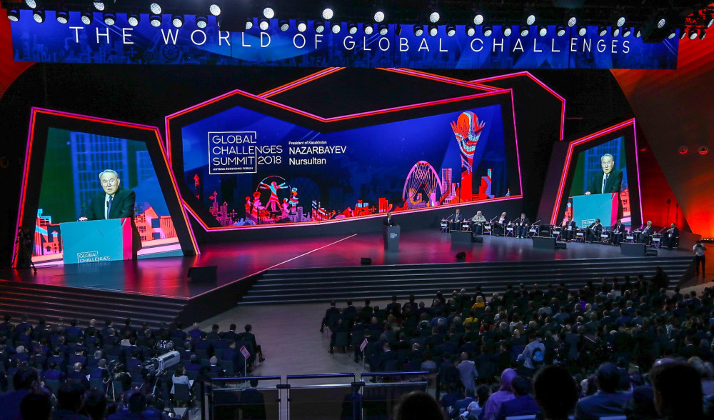 Пленарное заседание Астанинского экономического форума-2018 с участием Президента республики Казахстан "Мир глобальных вызовов" началось в Астане, передаёт корреспондент Bnews.kz.