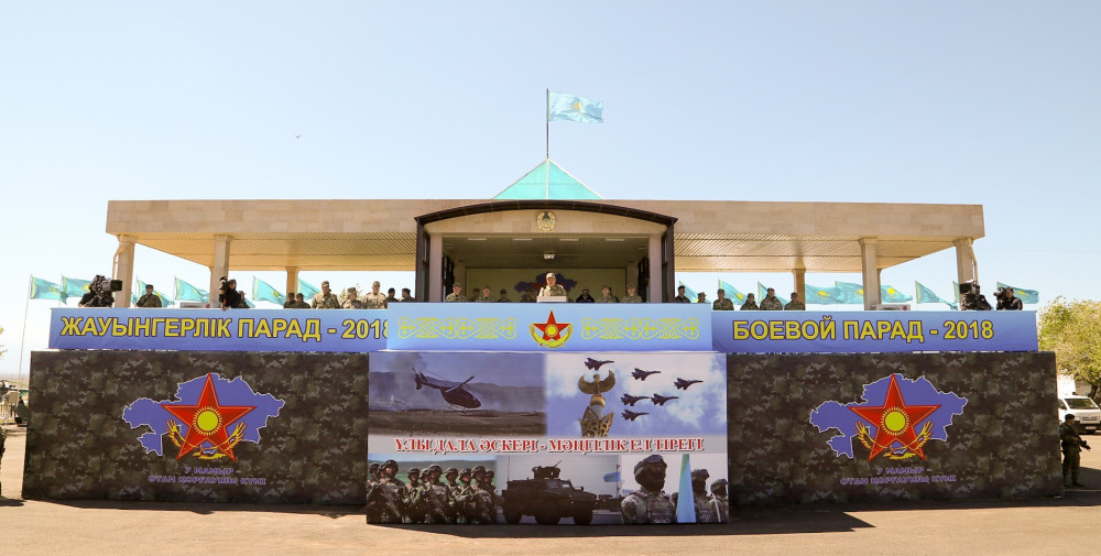 7 мая в честь Дня защитника Отечества на 40-й военной базе "Отар" Жамбылской области состоялся масштабный боевой парад с участием верховного главнокомандующего Вооруженными Силами РК – Главы государства Нурсултана Назарбаева, сообщает корреспондент BNews.kz.