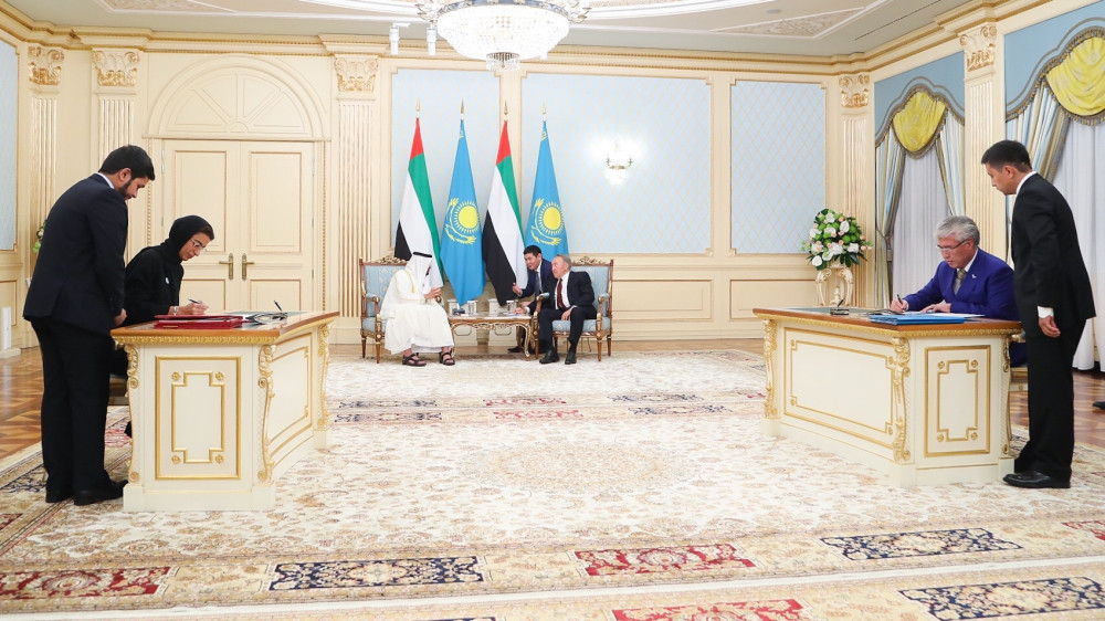 "Очень рад, что, несмотря на напряженный график, вы приняли мое предложение и приехали в Казахстан. Вы всегда посещаете наши мероприятия, на Универсиаде присутствовал шейх Мансур. Я помню, встречался с вашим покойным отцом шейхом Заидом, когда я приезжал, он меня встречал будто родного отца. Мы выпустили книгу об этом человеке, и я хотел бы ее вам презентовать", - сказал Нурсултан Назарбаев.