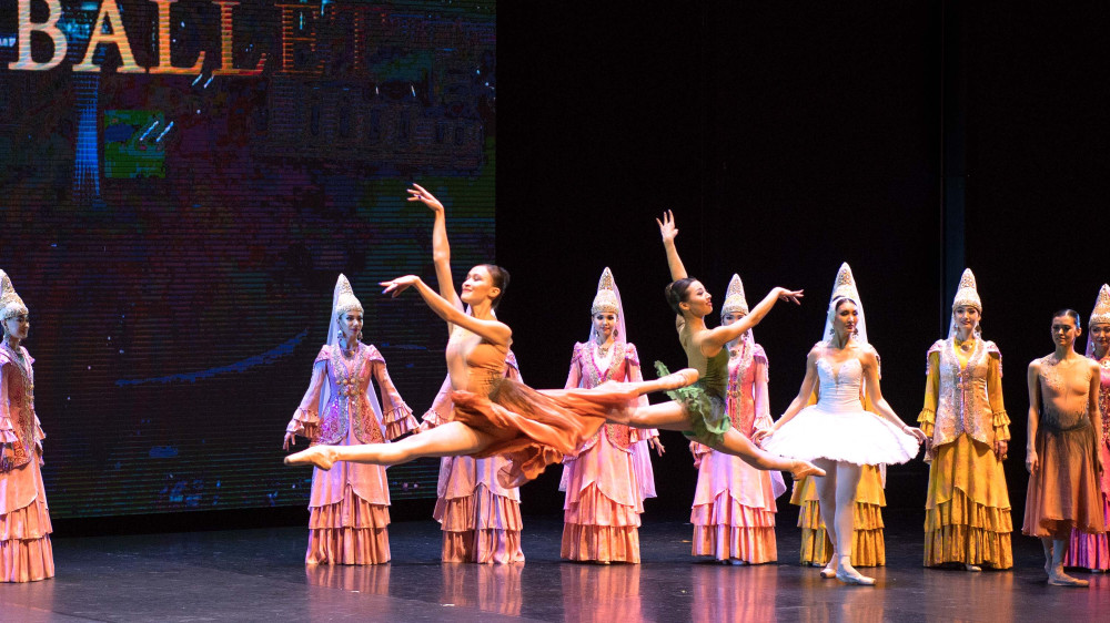 В программу включены хореографические миниатюры "Арулар", "Ак кыз", "Асемконыр", классическая редакция адажио из балета "Щелкунчик" и другие постановки.