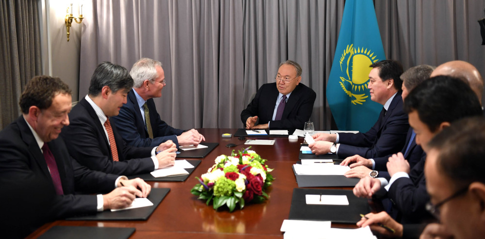 В Нью-Йорке Назарбаев встретился с главным исполнительным директором компании ExxonMobil Дарреном Вудсом.