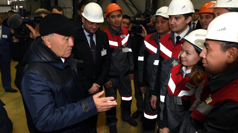 Президент РК Нурсултан Назарбаев в ходе поездки в Актюбинскую область посетил рельсобалочный завод и встретился с его работниками, сообщает корреспондент BNews.kz.