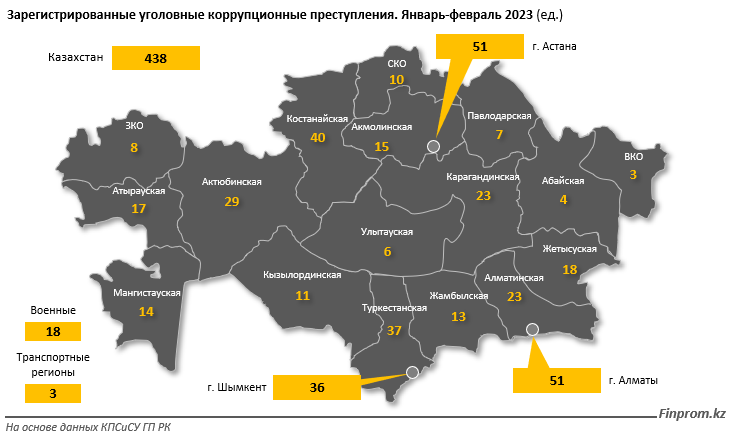 Всего за два месяца в Казахстане уже зарегистрировано 438 коррупционных преступлений, передаёт BaigeNews.kz со ссылкой на Finprom.kz.