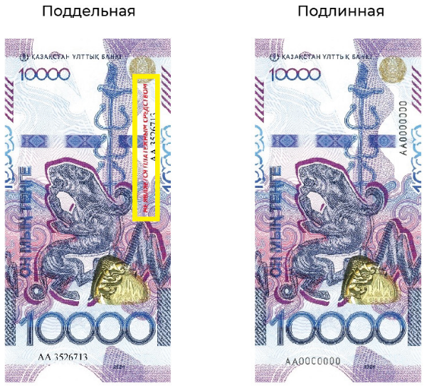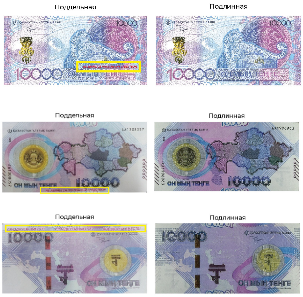 Национальный Банк также напоминает, что подлинные банкноты имеют ряд защитных признаков, которые легко определить при визуальном осмотре и на ощупь", - добавили в ведомстве.