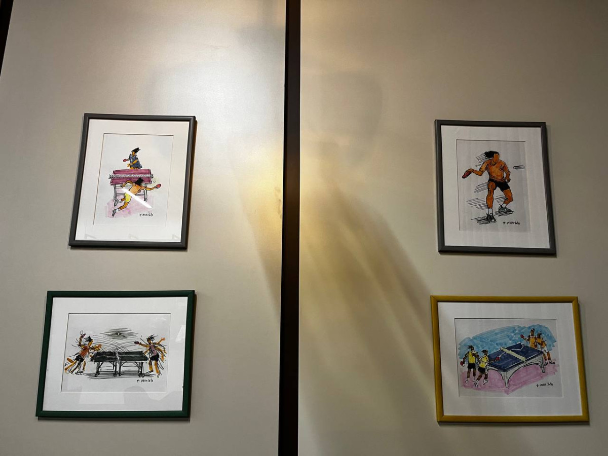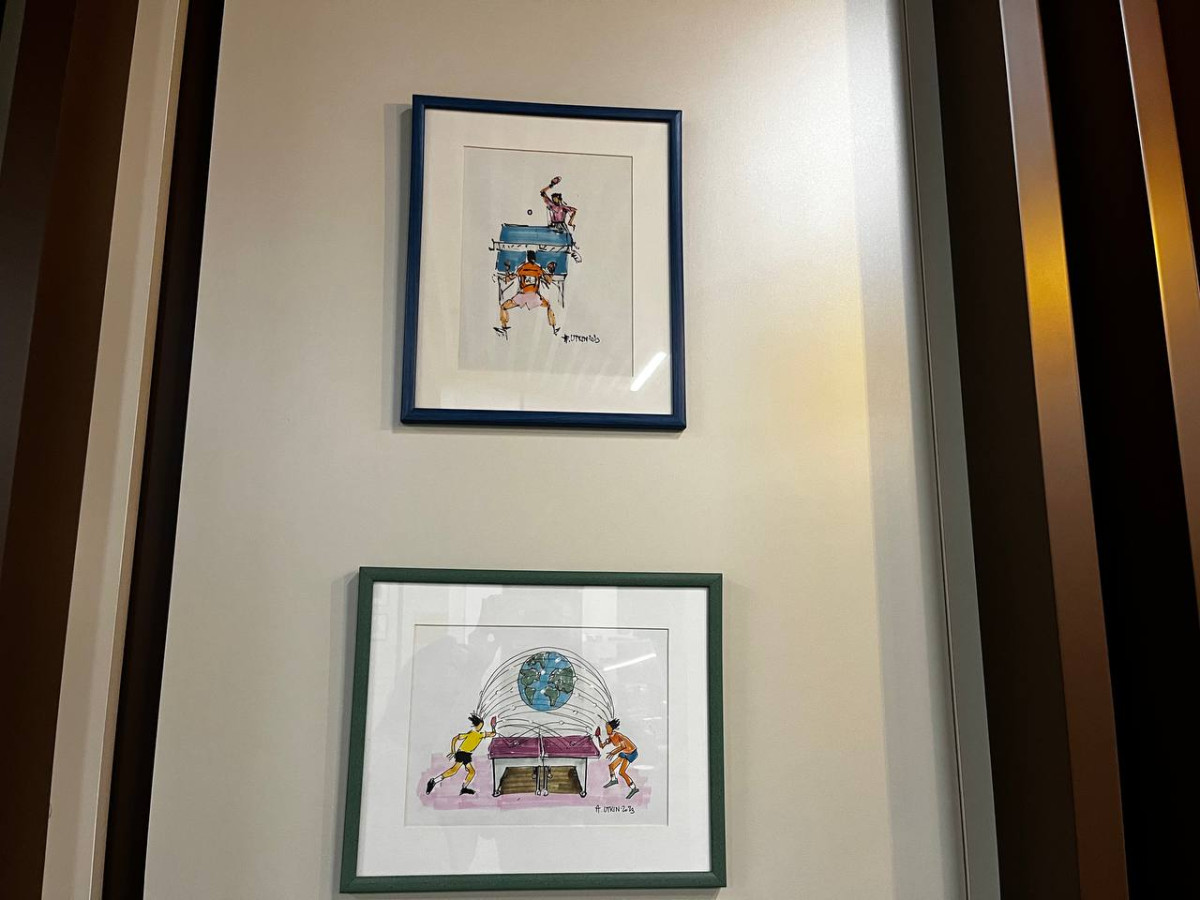 К слову, в центре можно увидеть картины, автором которых является один из ведущих игроков мирового настольного тенниса - Ван Чучинь. Помимо спортивных достижений, он известен и как творческая личность. Его работы посвящены настольному теннису: на холстах - динамика игры, моменты напряжённой борьбы и символика спорта. Эти картины стали настоящим украшением интерьера и подчеркивают особую атмосферу центра.