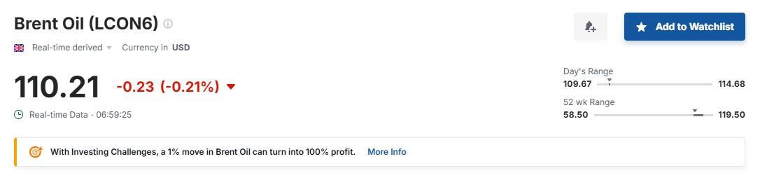 Однако позже цена начала корректироваться и опустилась примерно до уровня около 110 долларов за баррель.