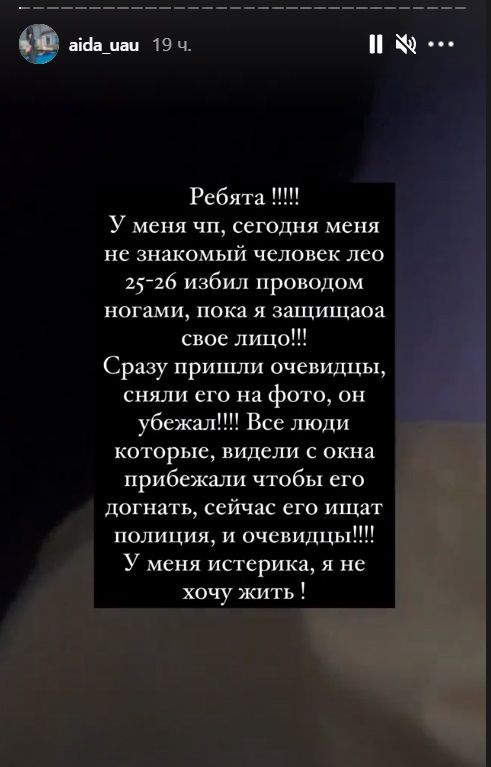 "Ребята, у меня ЧП, сегодня меня незнакомый человек лет 25-26 избил проводом, ногами, пока я защищала свое лицо. У меня истерика, я не хочу жить", - написала девушка.