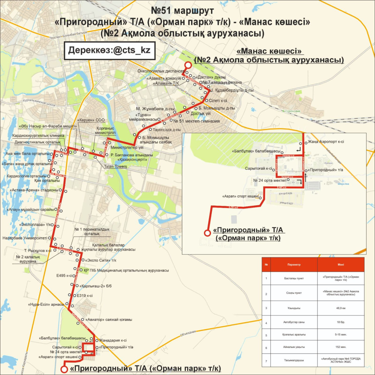 "Меняются схемы движения маршрутов №48 и №51. Маршрут № 48 теперь в направлении улицы Кудайбердиулы также будет курсировать с заездом на остановочный пункт "Гостиница Нурдаулет". Маршрут № 51 - схема движения продлевается до ЖК "Орман парк", - уточнили в компании.