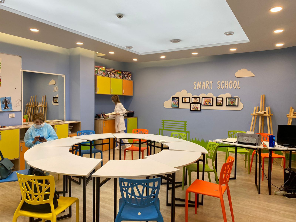 Второе, к чему приковывается взгляд в отделении онкологии – необычная школа с красивыми, просторными классами для учебы и досуга детей. Из беседы с методистом Ляйлёй Утегеновой мы узнали, что школу открыли в 2010 году специально для детей, находящихся на длительном лечении. Здесь пациенты обучаются по школьной программе с 1 по 11 класс на двух языках в дни, когда они свободны от лечения и процедур.