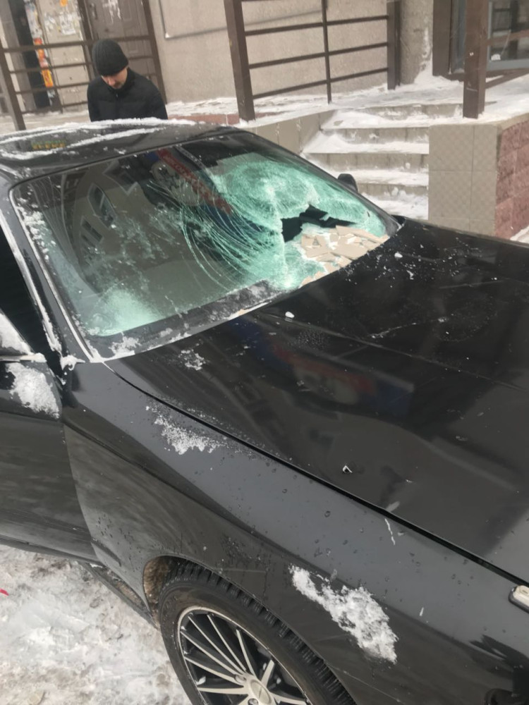 Со зданий сорвались металлические конструкции, которые повредили припаркованные автомобили.