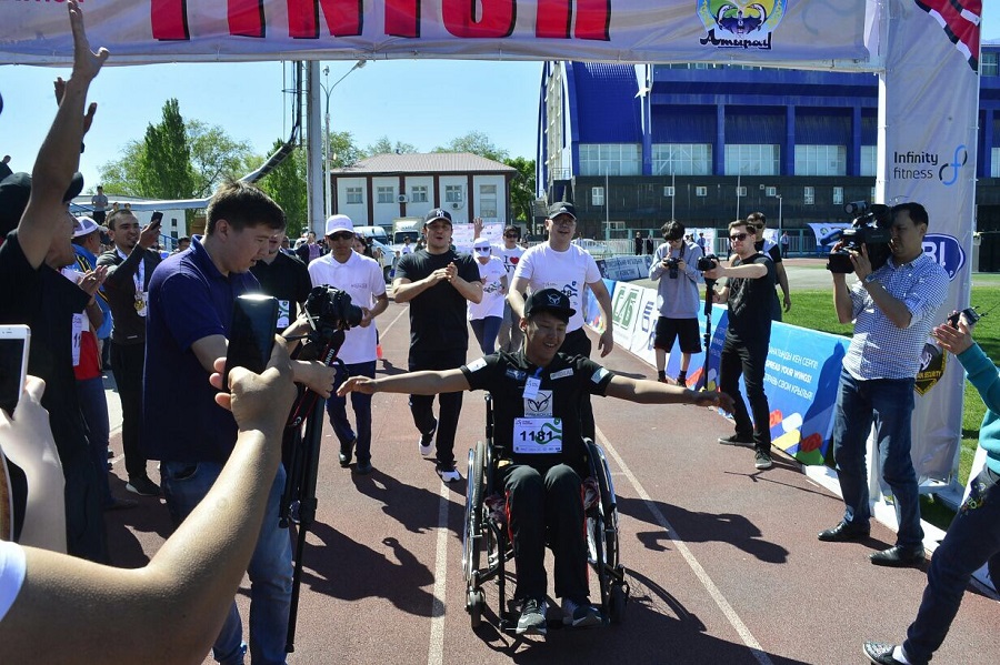 В забеге приняли участие Марат Жыланбаев, представители акимата Атырауской области, а также инвалид первой группы Ерлан Казиев, который был награжден ценным призом за волю к победе.